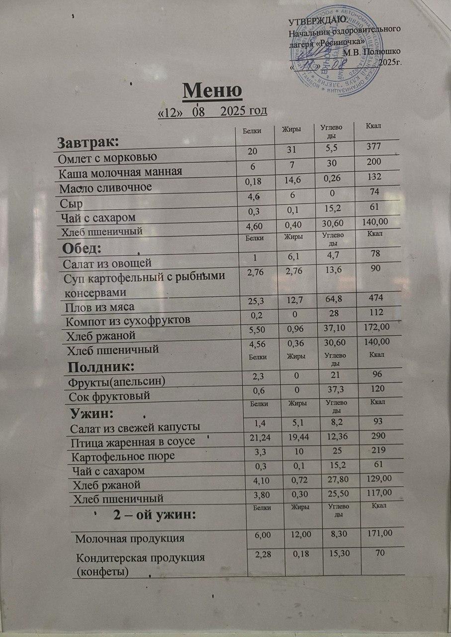 СмотретьЕжедневное меню основного питания 24.08.2025